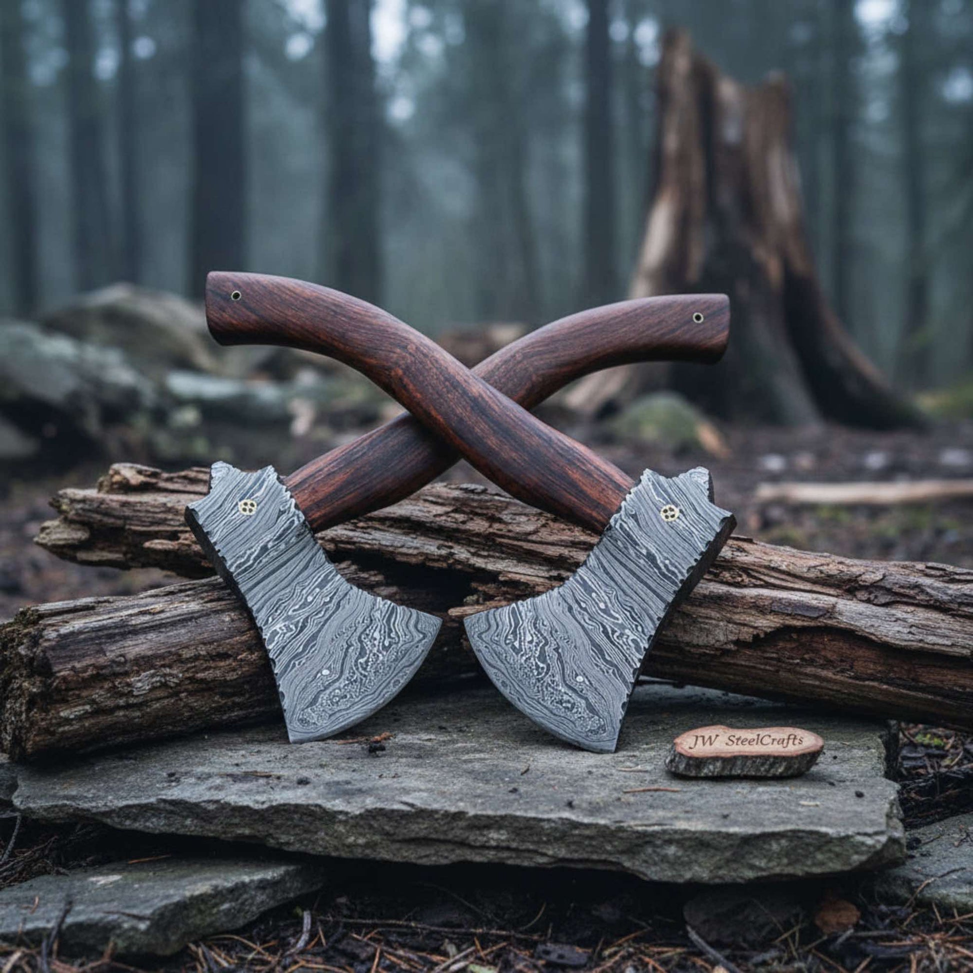 JW SteelCrafts produces handmade Damascus Viking axes, bearded axes, tomahawks, and functional bushcraft tools.