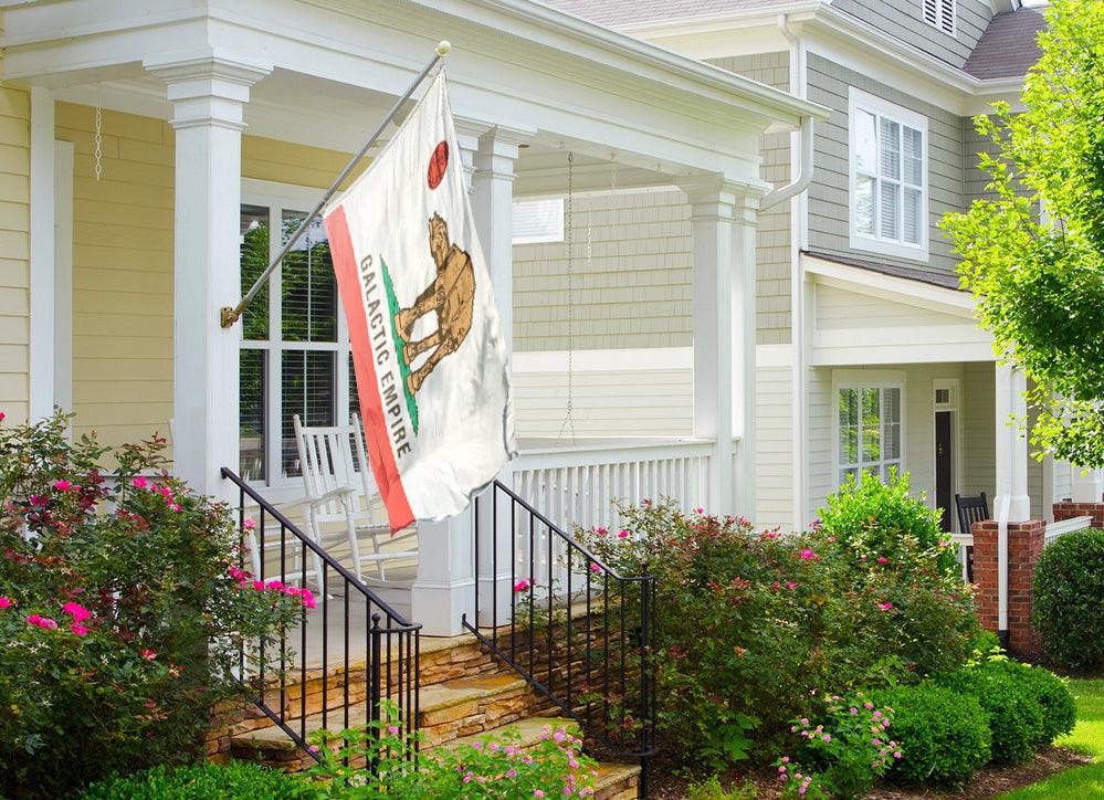 This flag makes a thoughtful gift for sci-fi fans, California enthusiasts, collectors, or cosplayers. Display it at homes, yards, fan caves, or at conventions and watch parties to celebrate the Galactic Empire and show your California sci-fi pride.