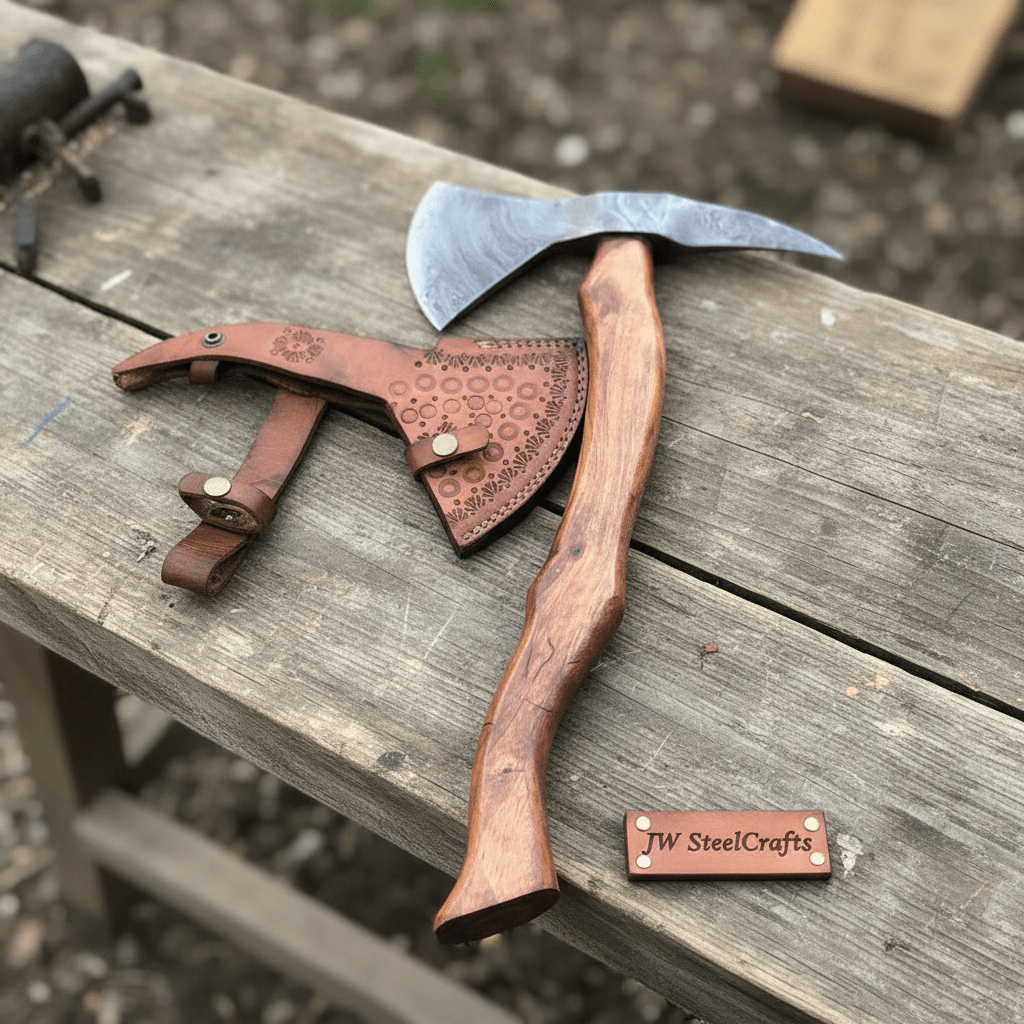 JW SteelCrafts produces handmade Damascus steel axes using traditional forging techniques. Each axe is shaped, hardened, and finished by hand to ensure strength, performance, and long-term durability.
