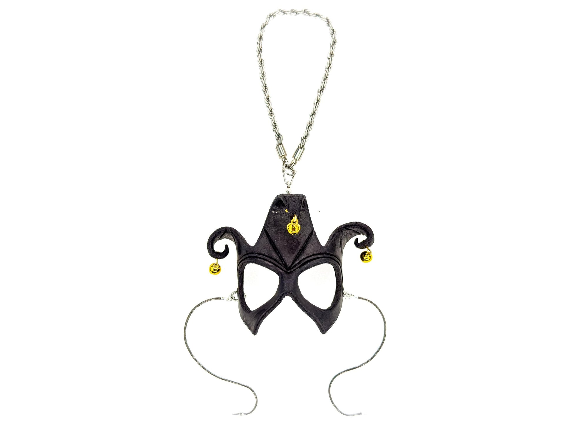 Court Jester - 3 Point Leather Mini Mask – Handcrafted Charm for Rearview Mirrors, Handbags, Lanyards, Party Favors & More