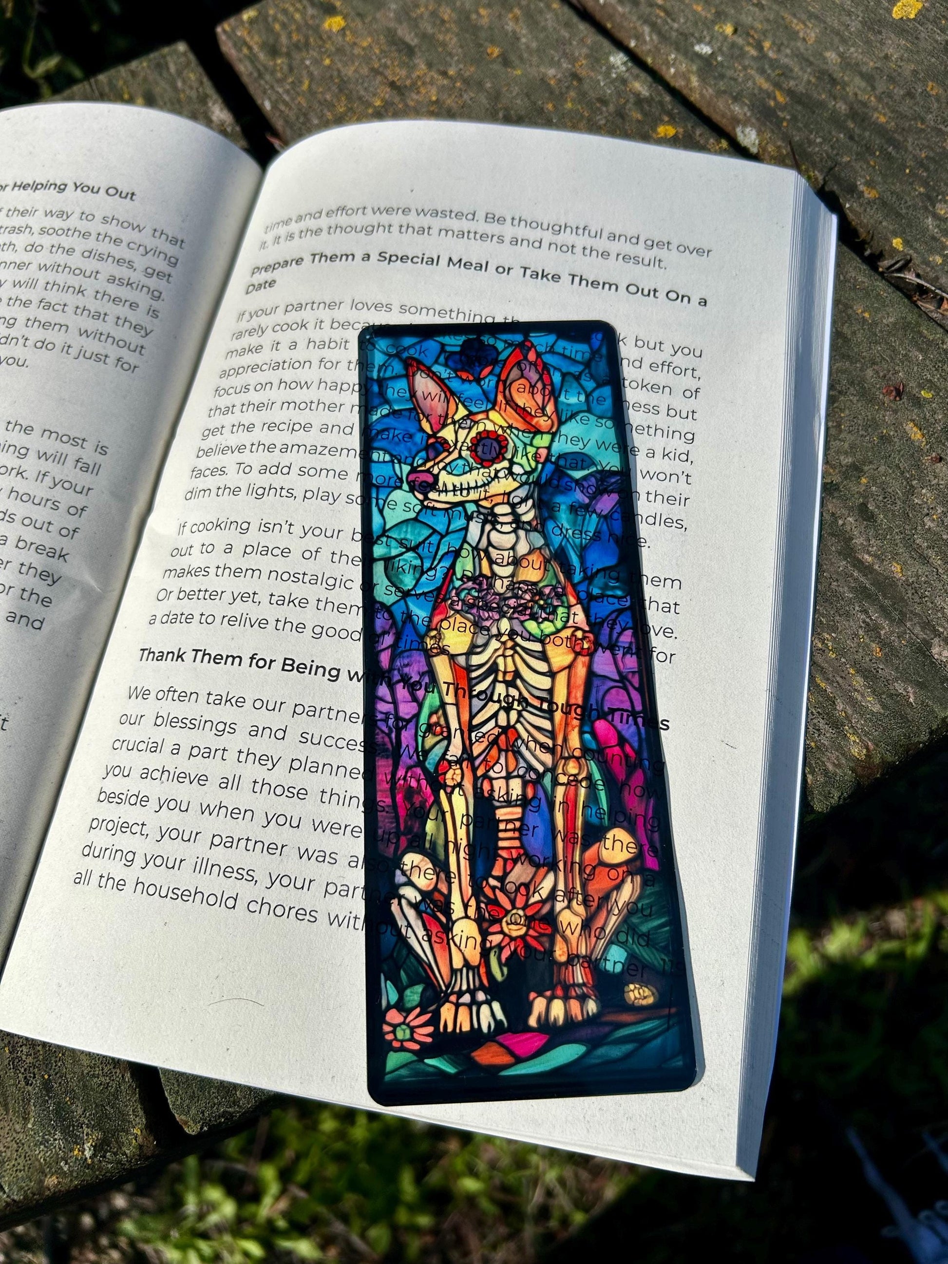The Coolest Bookmarks You've Probably Ever Seen....Celebrate the vibrant spirit of the Day of the Dead with this colorful Day of the Dead Dog Bookmark. Featuring a beautiful sugar skull dog design, this bookmark is perfect for dog lovers, bookworms, and fans of Halloween or Mexican traditions. Crafted with high-quality materials, it’s a functional yet eye-catching accessory to mark your place in books, journals, or planners. A unique and thoughtful gift for anyone who loves dogs, art, or the cultural celebration of Día de los Muertos! Hand Made In Bend Oregon