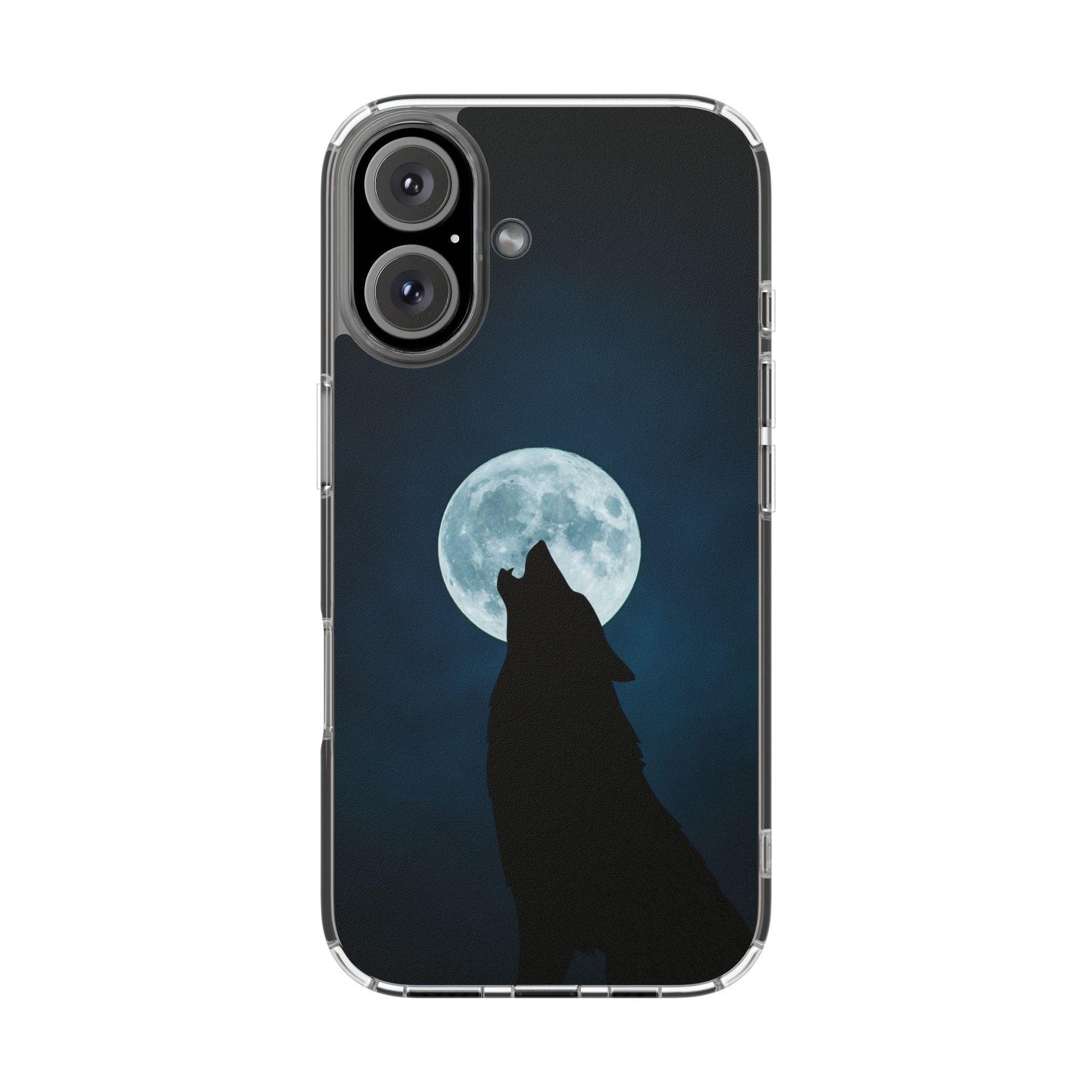 Unleash the spirit of the wilderness with the Full Moon and Wolf Clear Case, a case that brings the mystique of a full moon night and the majesty of the wolf to your phone. This unique case features an enchanting scene of a lone wolf silhouetted against a full, luminous moon, set against a clear backdrop that allows your phone’s natural beauty to enhance the design. The artful depiction of the wolf, accompanied by the glowing moon and subtle shadows, captures the essence of freedom, strength, and mystery. Perfect for nature lovers, adventurers, and anyone drawn to the allure of the wild, this case is not only visually captivating but also highly protective.