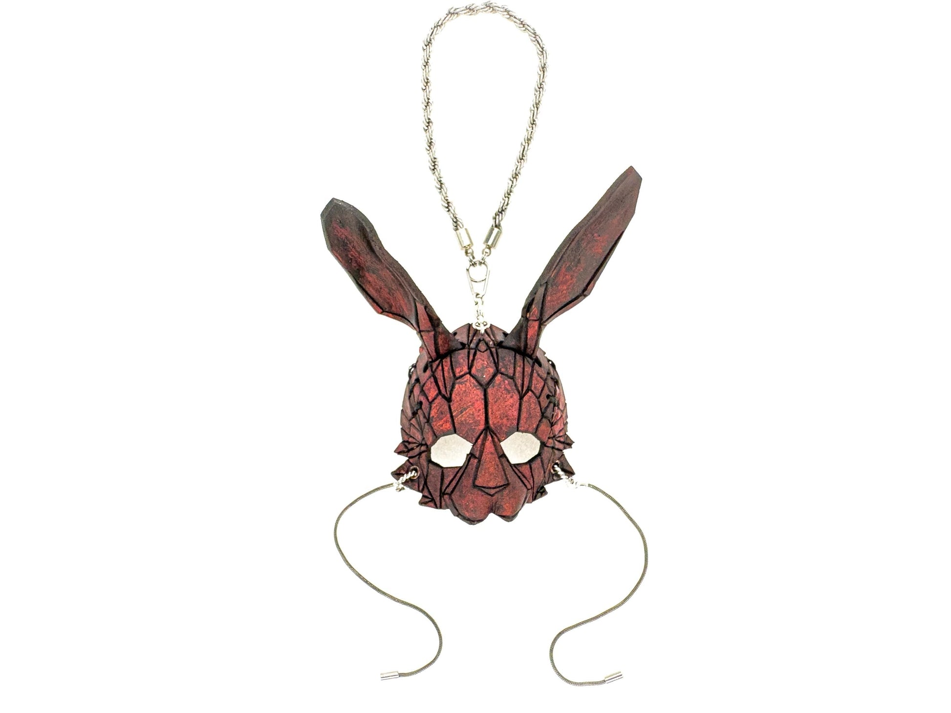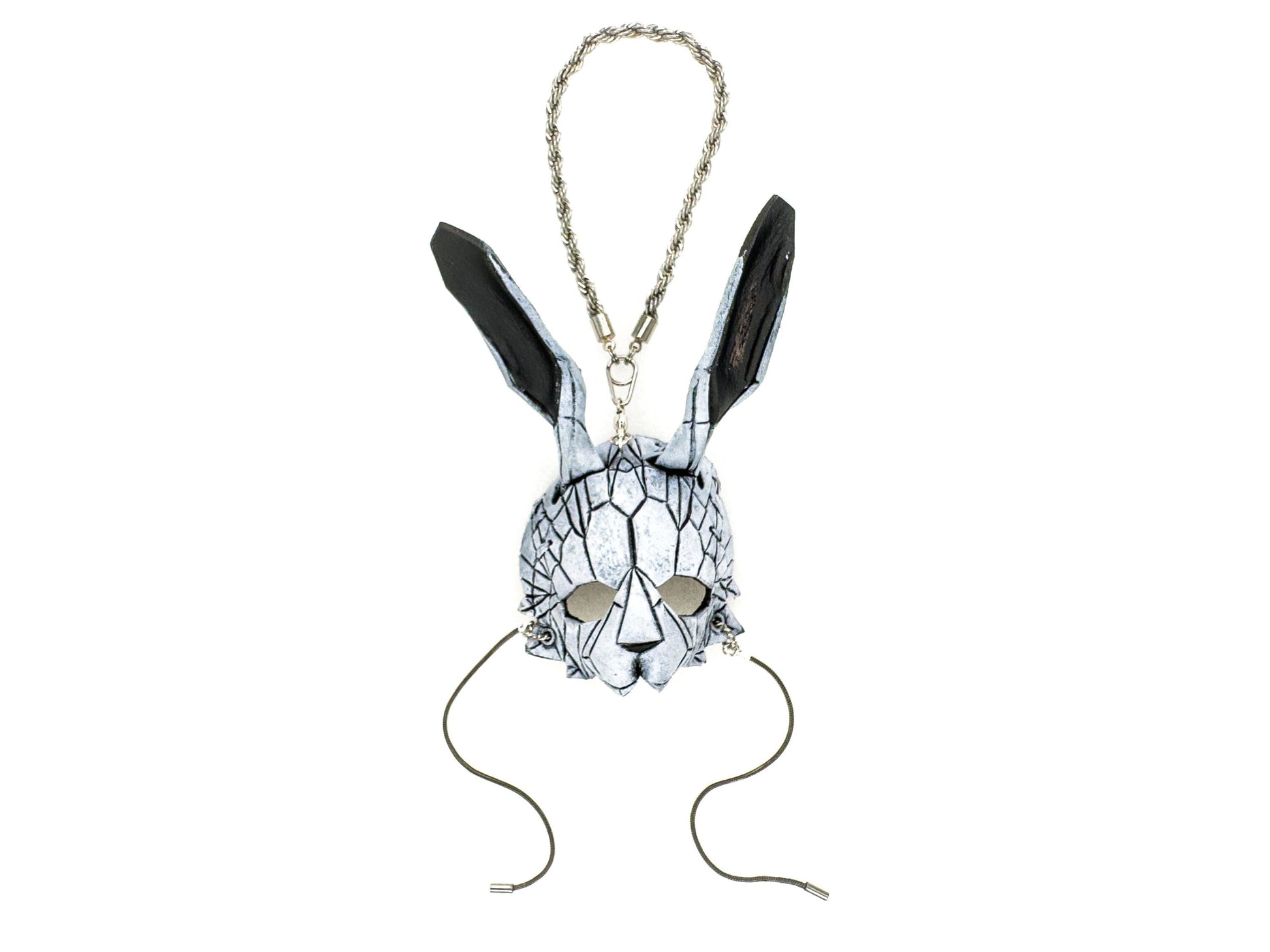 Introducing our handmade leather mini geometric bunny mask—a meticulously crafted, full-detail miniature that blends the eerie allure of geometric design with the playful yet unsettling charm of the bunny. Inspired by modern, angular art, this unique mask captures a dark, abstract interpretation of the classic bunny shape, perfect for adding a touch of mystery and intrigue to your collection. Whether you're drawn to the juxtaposition of innocence and eeriness, or simply love one-of-a-kind, handcrafted accessories, this miniature leather mask charm makes a bold statement. Show off your unconventional style with one (or many) of these handcrafted, genuine leather geometric bunny masks, each one a tribute to both the beauty and the bizarre.