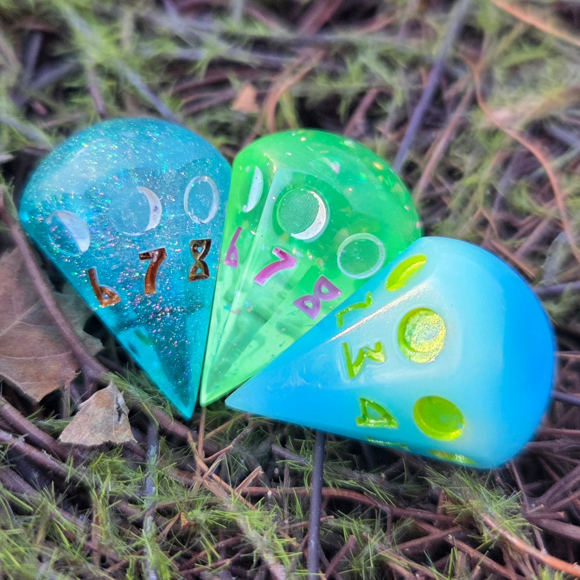'It's Just a Phase' Moon Phase D8 Alternative Shaped Orb TTRPG Handmade Resin Polyhedral Gaming Dice