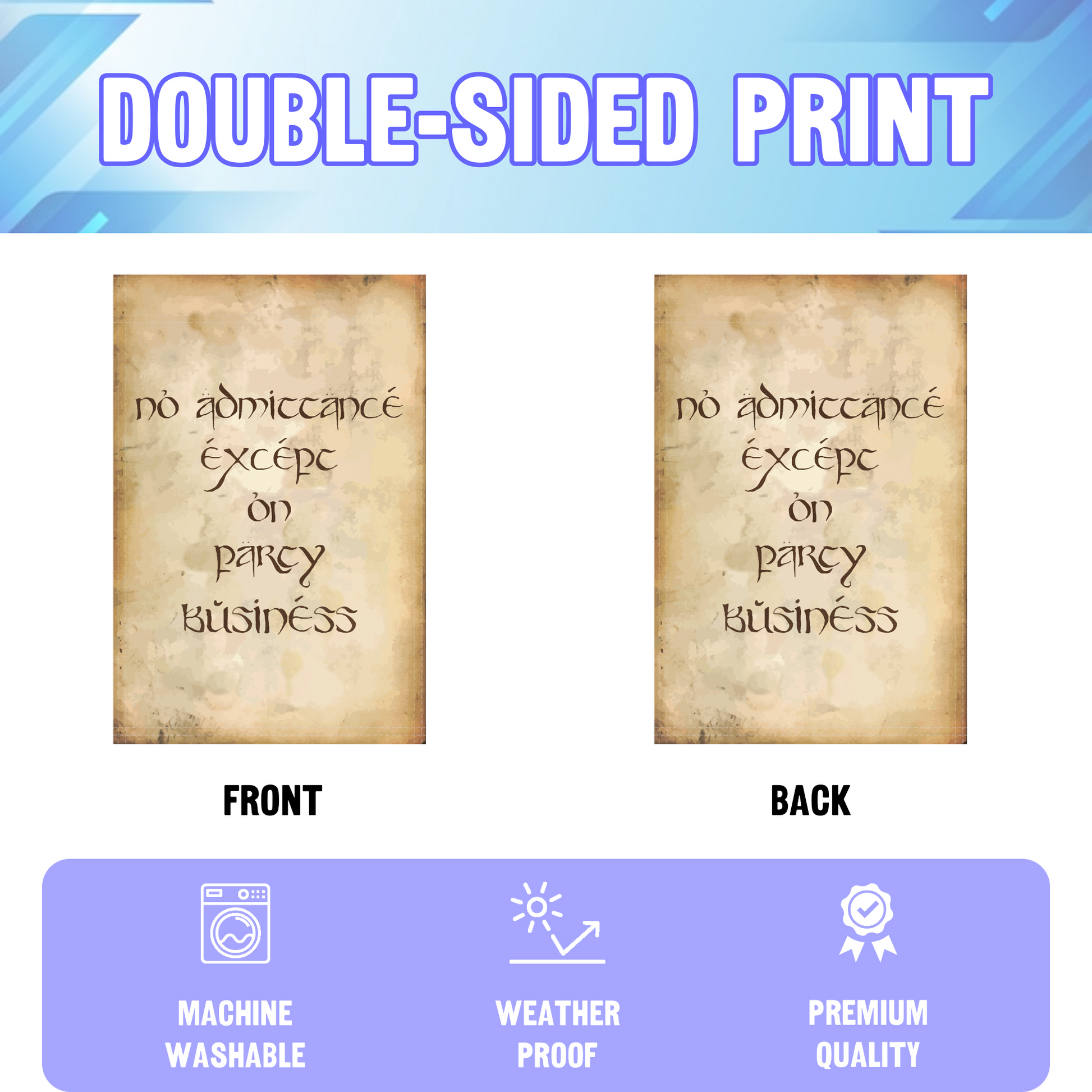 Step into Middle-earth with the LOTR No Admittance Except On Party Business Garden Flag—perfect for Tolkien fans who love whimsy and a touch of exclusivity in outdoor décor. Designed for gardens, yards, and patios, it brings a playful nod to a beloved fantasy world to your doorway or path.