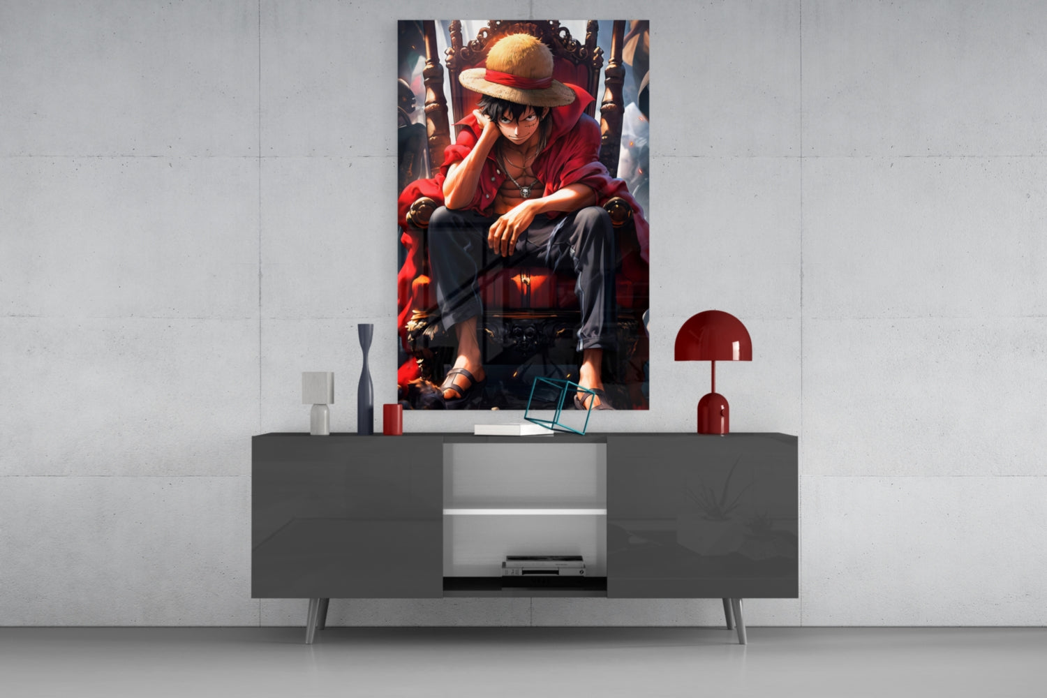 Luffy on the throne Glass Wall Art || Designer Collection by Insigne
