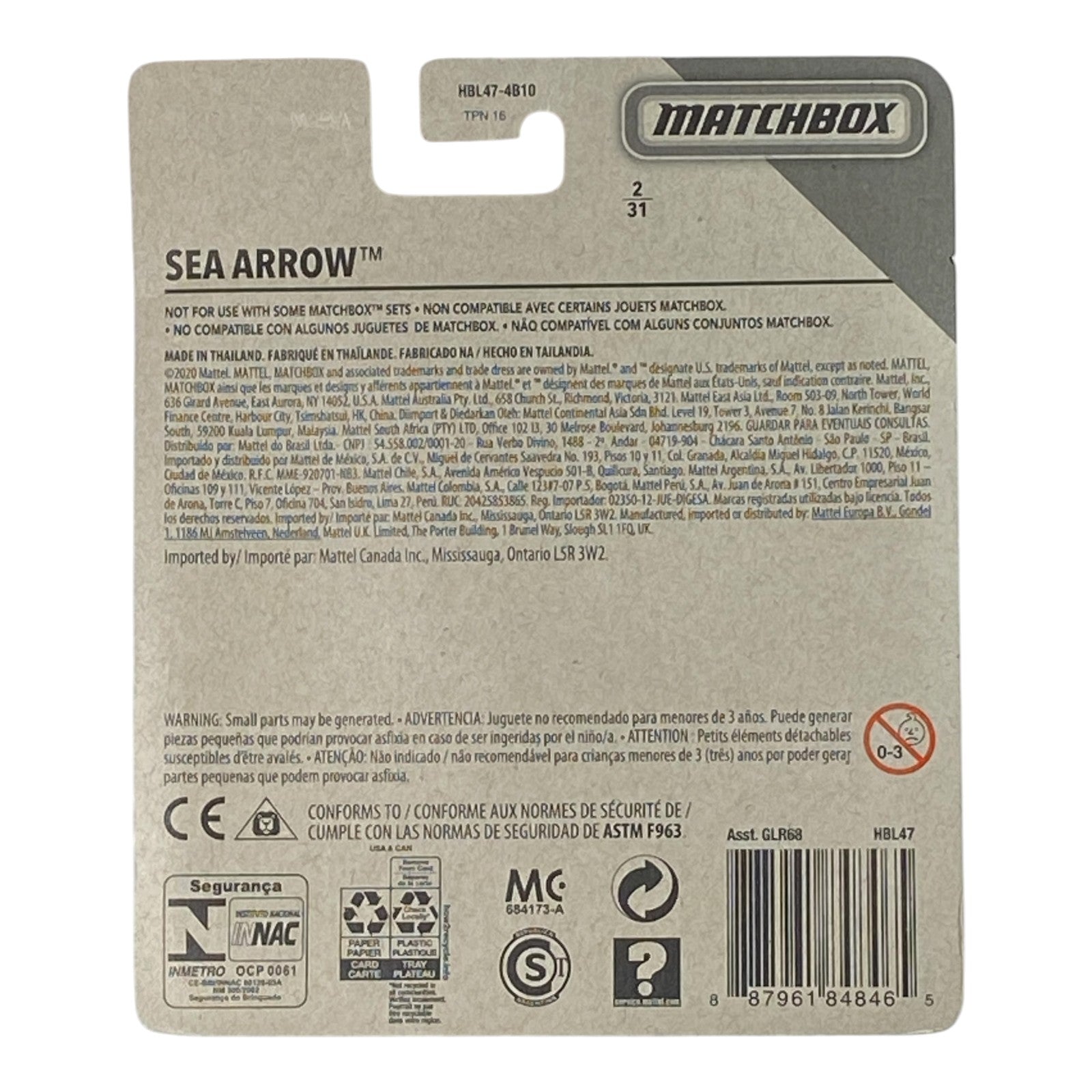 Elevate your aviation diecast collection with the Matchbox Sea Arrow from the Sky Busters Series 2/31, a timeless 1:64 scale replica of this unique push-pull twin-boom fighter-inspired aircraft (SB-98 casting). Featuring a sleek, futuristic design with forward and rear-mounted props (or jet-style in some variants), twin booms, detailed cockpit, authentic military/oceanic tampo graphics, and realistic proportions that evoke high-speed maritime reconnaissance vibes. Often seen in bold color schemes like blue/yellow accents or silver/blue finishes, it rolls smoothly for display or play. Ideal for Matchbox Sky Busters completists, weird aircraft fans, aviation enthusiasts, or collectors hunting fresh series placements—this release delivers durable metal construction, sharp detailing, and endless imagination in one compact, high-flying package.