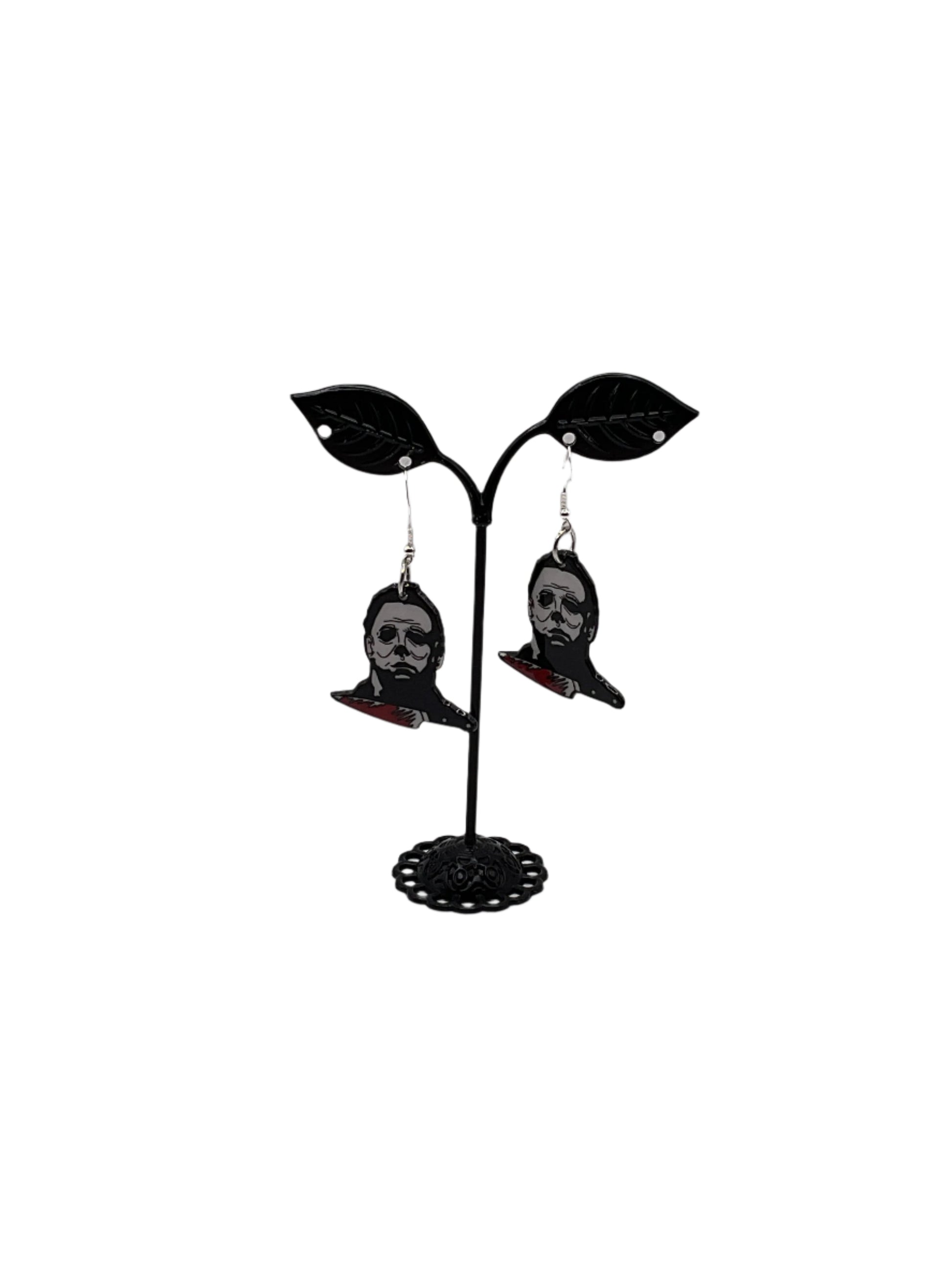 Show off your spooky side with these Michael Myers earrings, inspired by the iconic Halloween movie villain. Perfect for fans who want to add a playful, eerie touch to their look, these earrings capture the chilling essence of the classic horror character in a fun, wearable way. Ideal for Halloween or any time you want to channel a bit of frightful flair!
