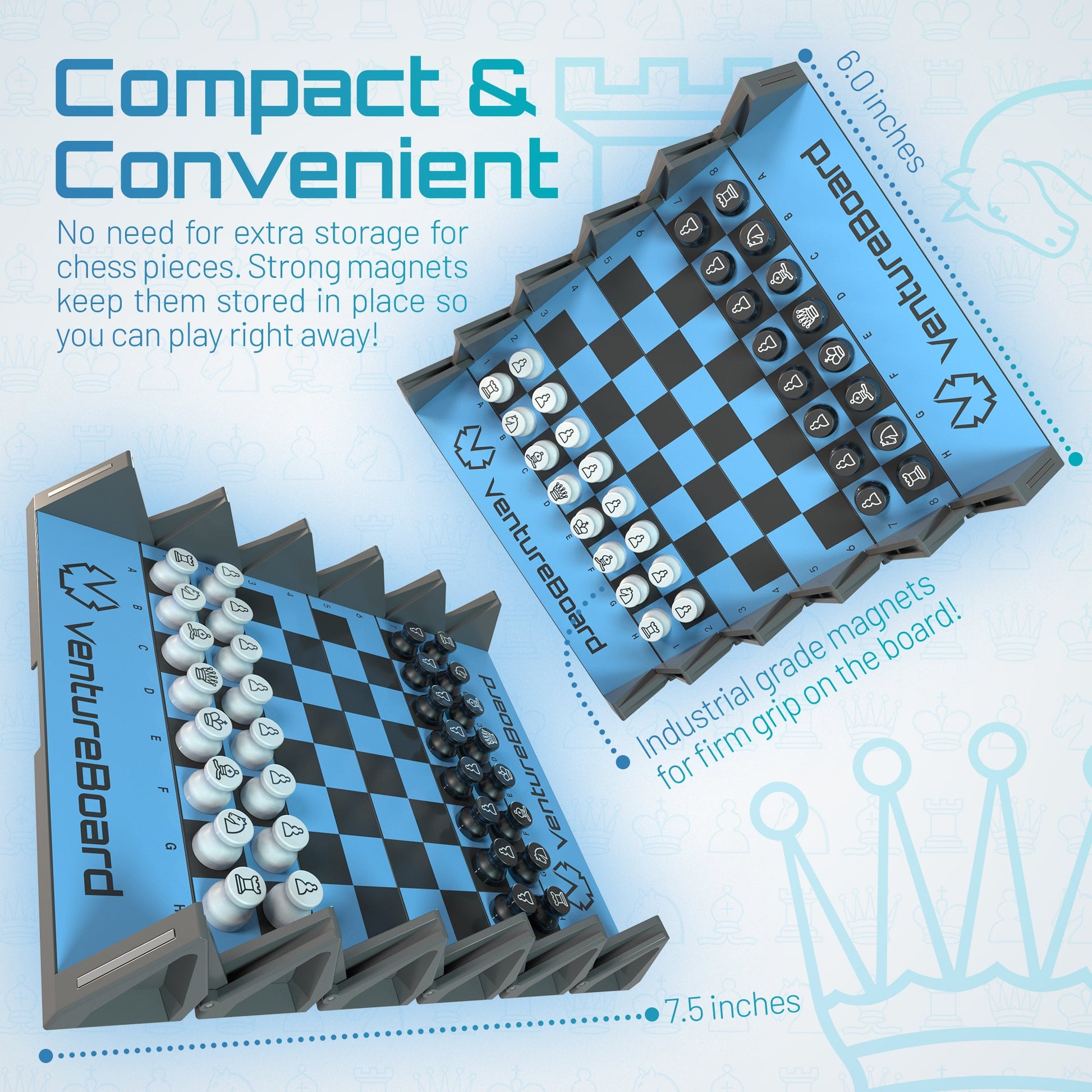 Pint-sized and powerful, this ultra-compact Chess board is fit for every adventure and rolls to save your game in a blink.