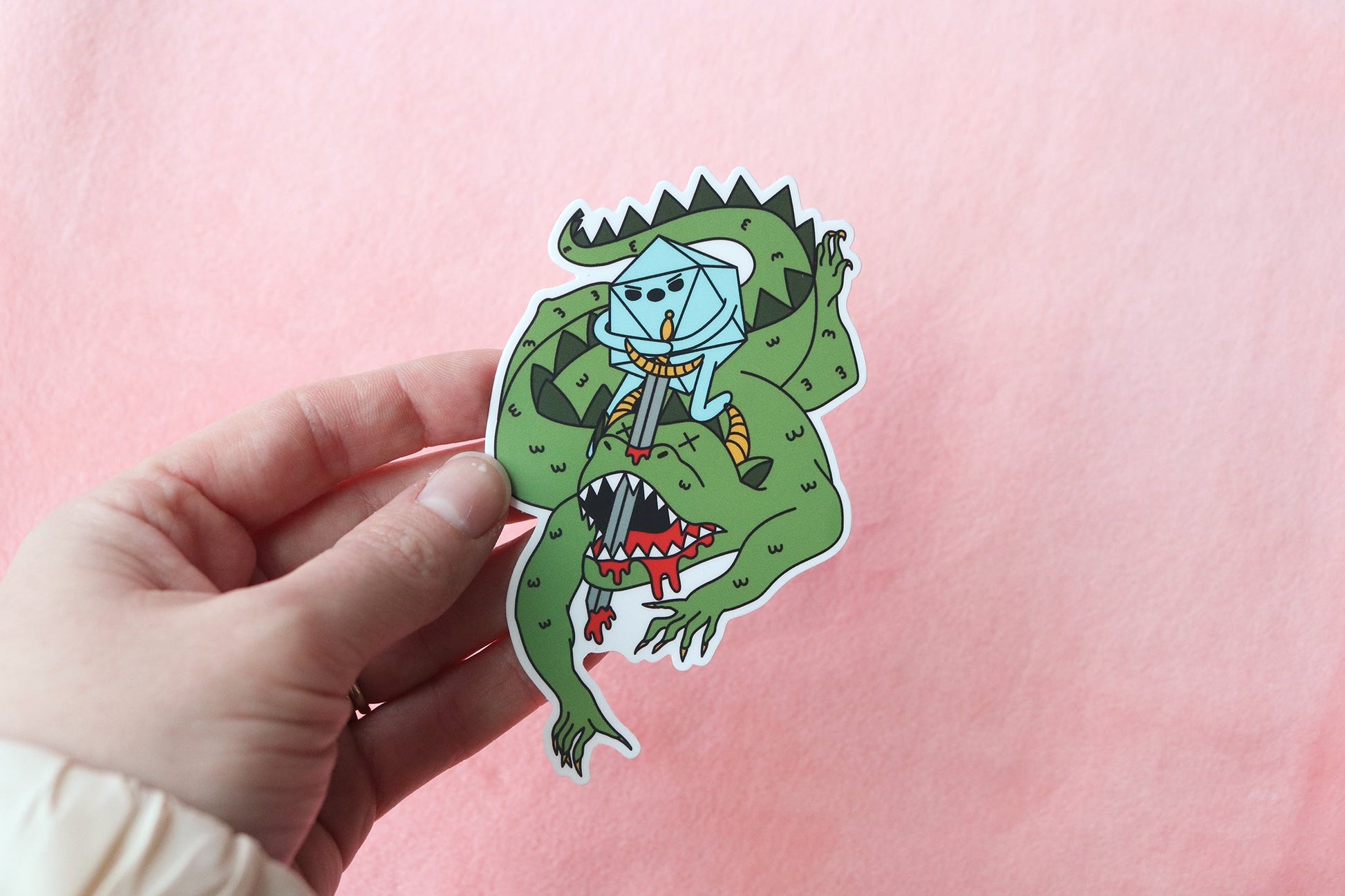 We've got beef with big, bad, evil dragons. Nothing feels better than getting the final blow to one, and making it extra epic! This sticker will be a perfect gift for your campaign murder hobo, dungeon masters, or fighter!