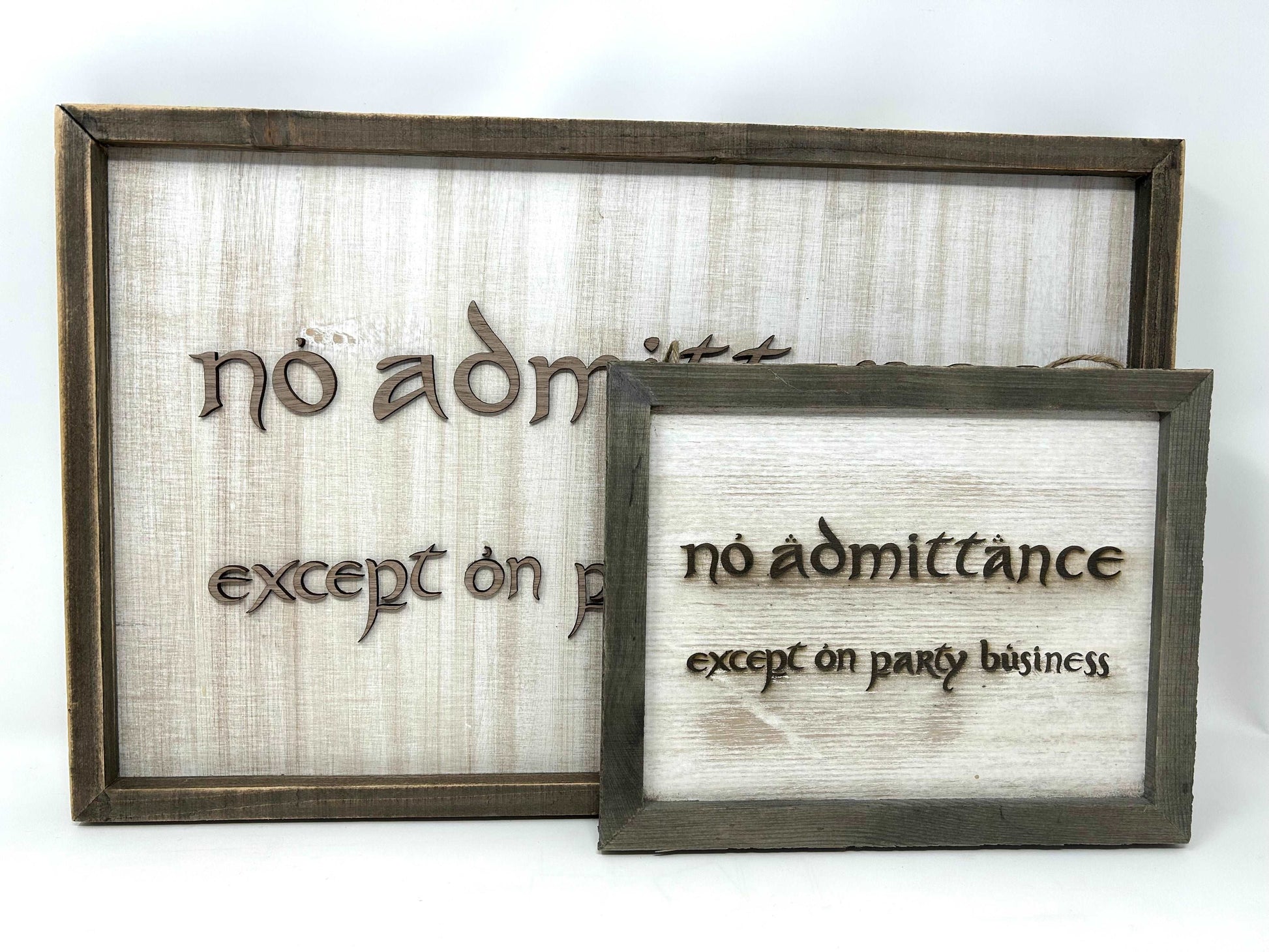 I've designed two different sized signs (the smaller being an excellent choice to hang on a bedroom door!) to bring a little of the adventure of the Lord of the Rings story to your home.