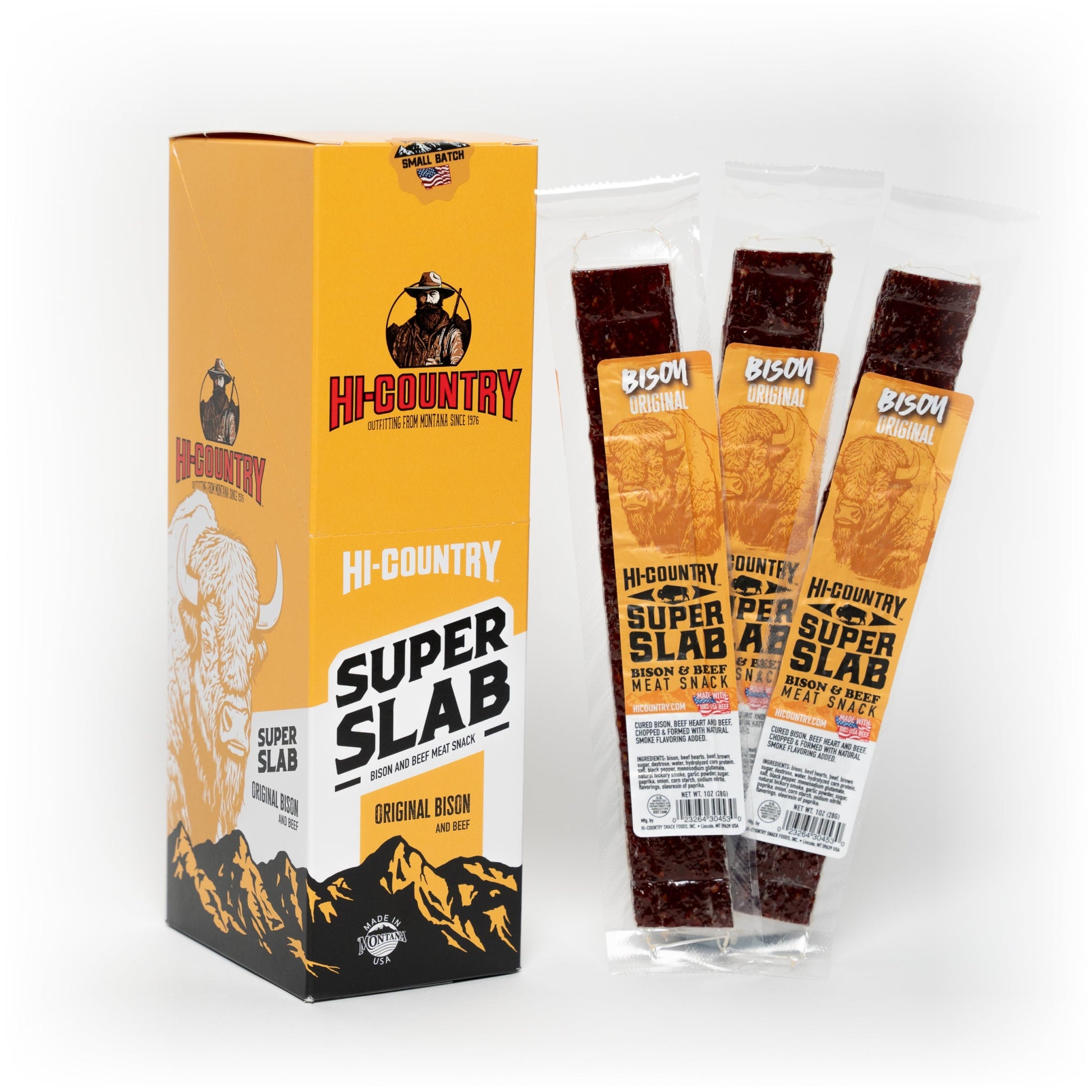Original flavored bison with beef super slab caddy. Enclosed in each caddy is 20 counts of 1oz. individually wrapped slab jerky.