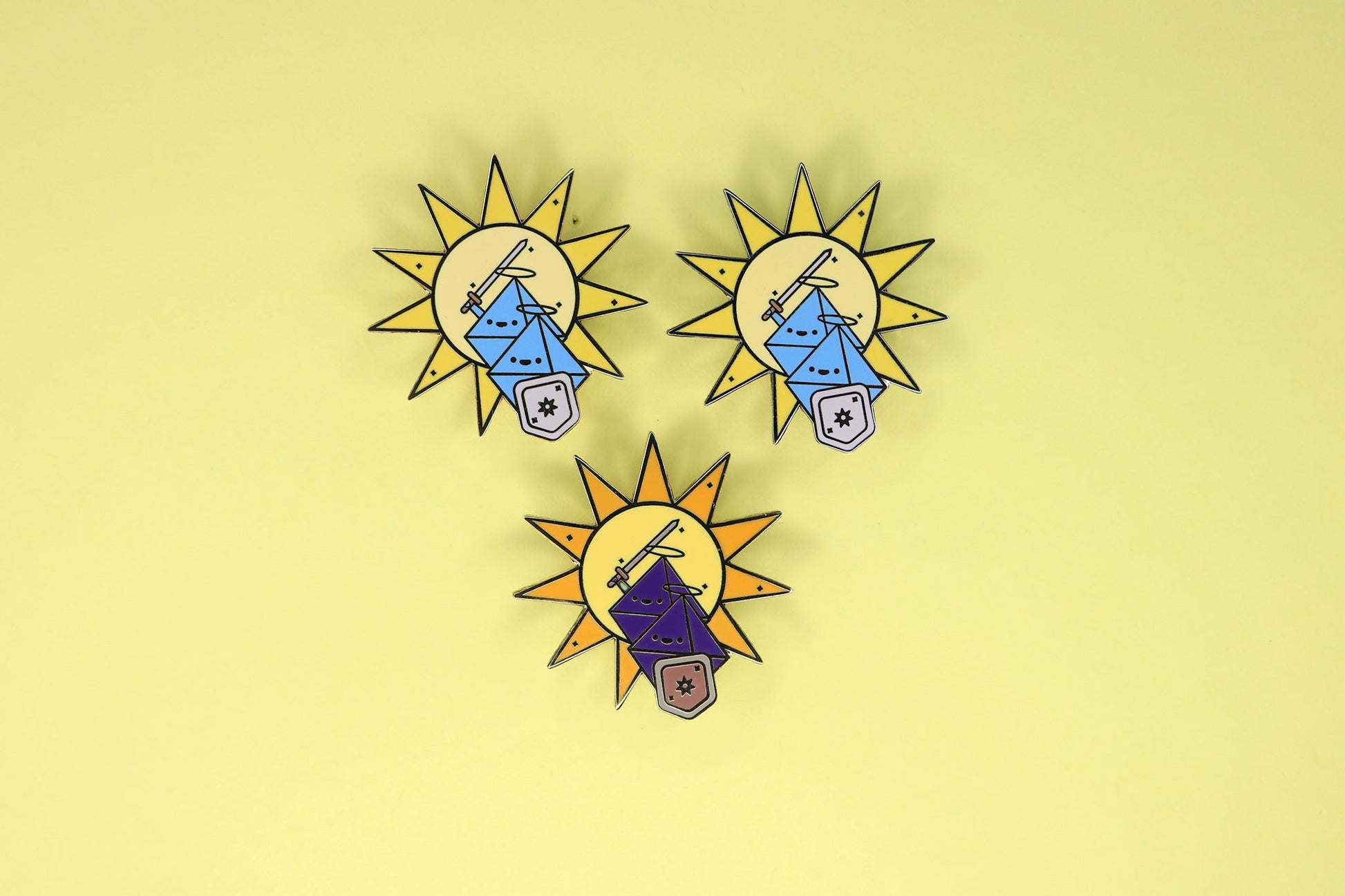 Not today, evil! The just and righteous tiny dice paladin buddies use divine smite on their enemies, and a divine radiance illuminates their bodies. This hard enamel pin will be the perfect gift for your Dungeons and Dragons campaign paladin.