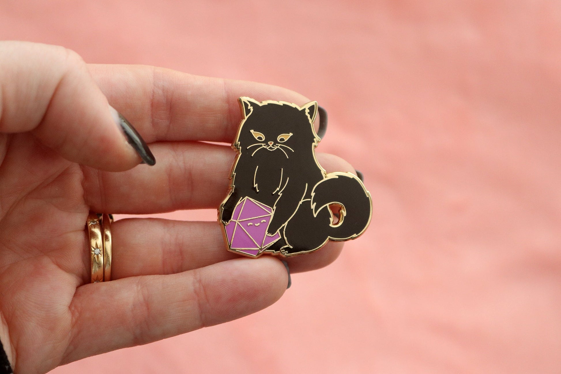 Do you have a Persian cat that snuggles up with your dice while you're trying to play tabletop games? If so then this pin is perfect to add to your collection!