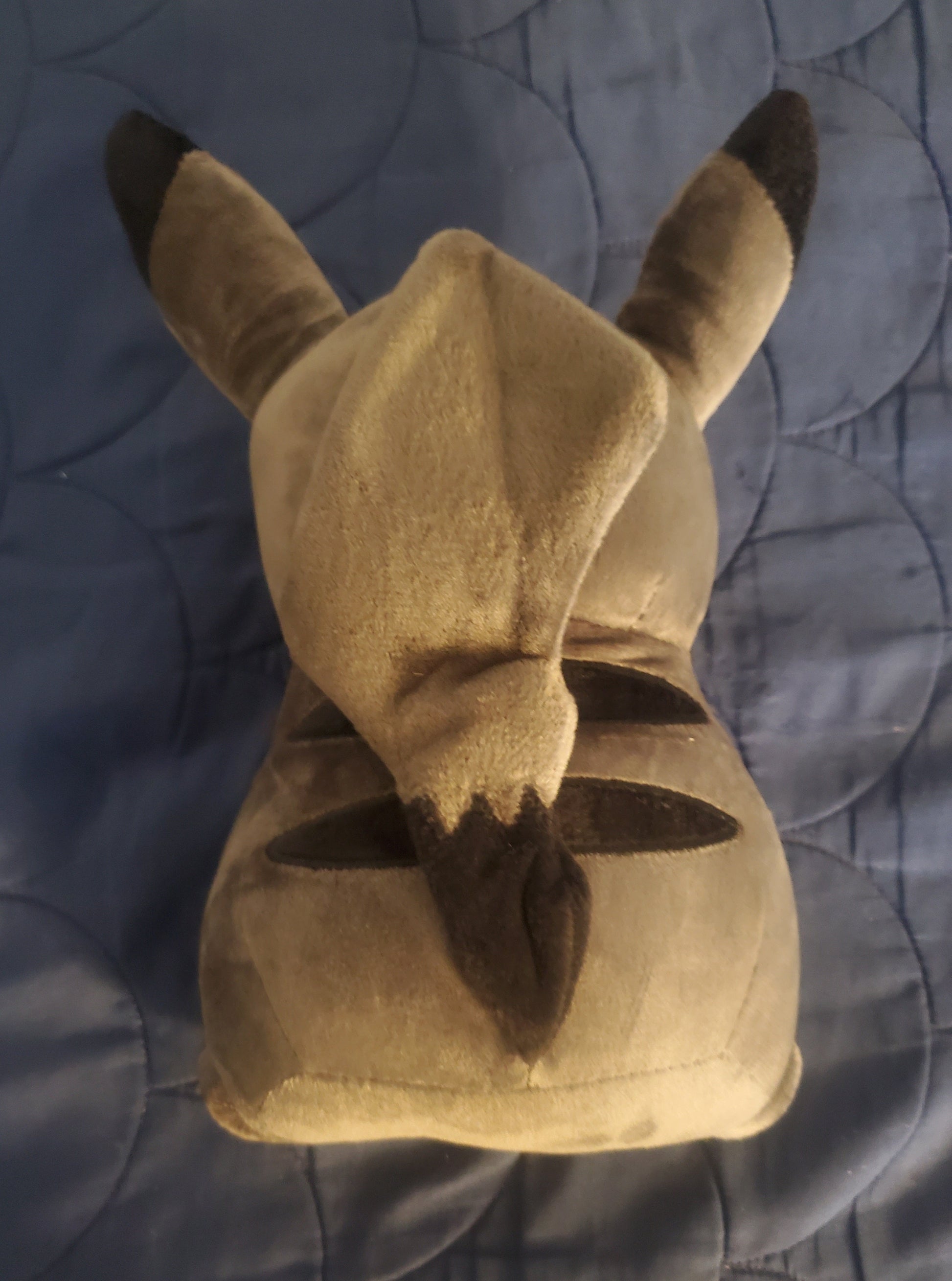 Dark Pikachu plush. The exact dimensions are 18 x 12 x 28 CM. This soft and adorable plush will instantly make the Dark Pikachu your favorite Pokemon if it isn't already. Celebrate your love for Pokemon by getting your favorite one as a stuffed plush!
