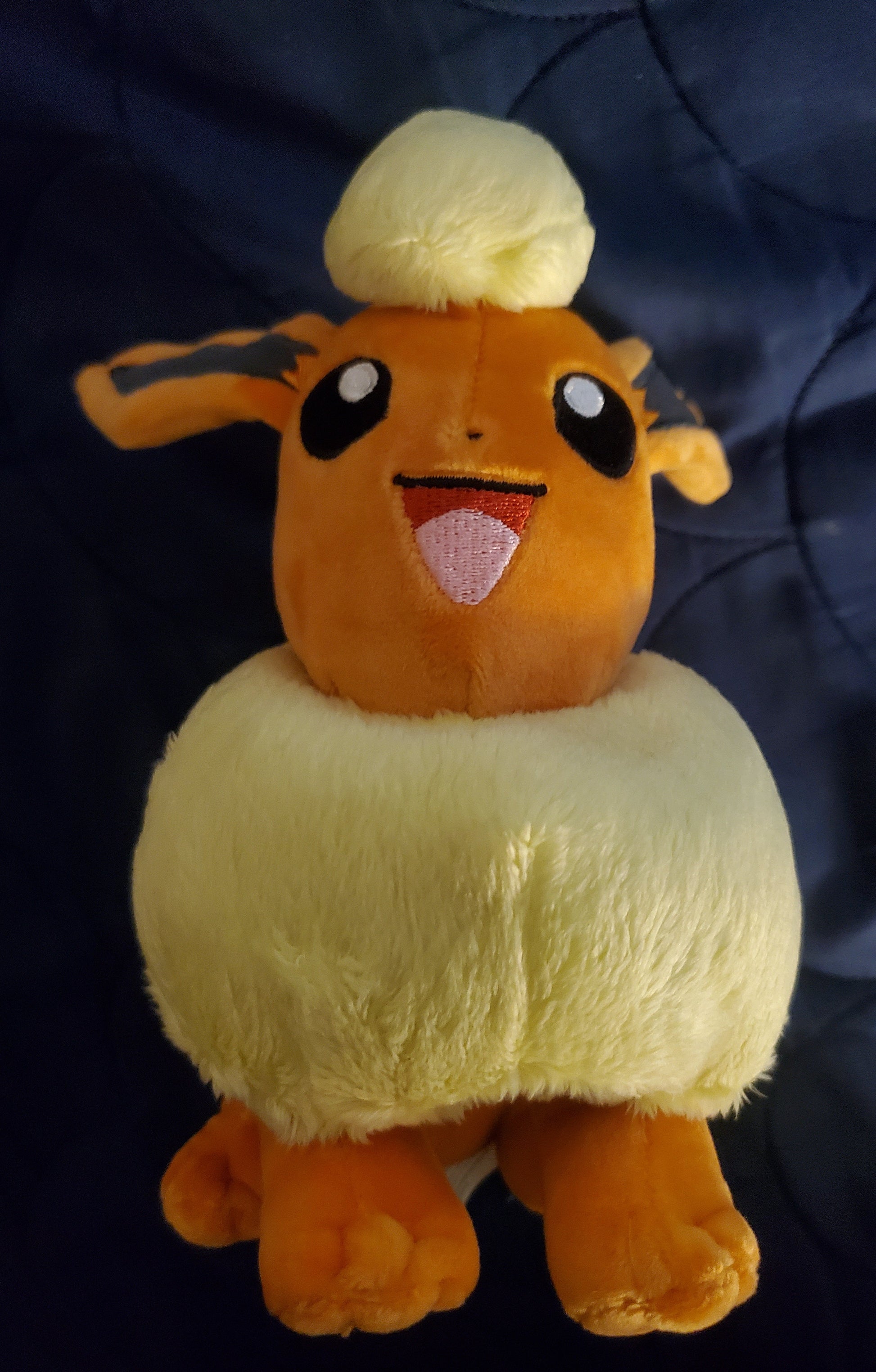 Flareon plush, the exact dimensions are 20 x 11 x 20 CM. This soft and adorable plush will instantly make Flareon your favorite Pokemon if it isn't already. Celebrate your love for Pokemon by getting your favorite one as a stuffed plush!