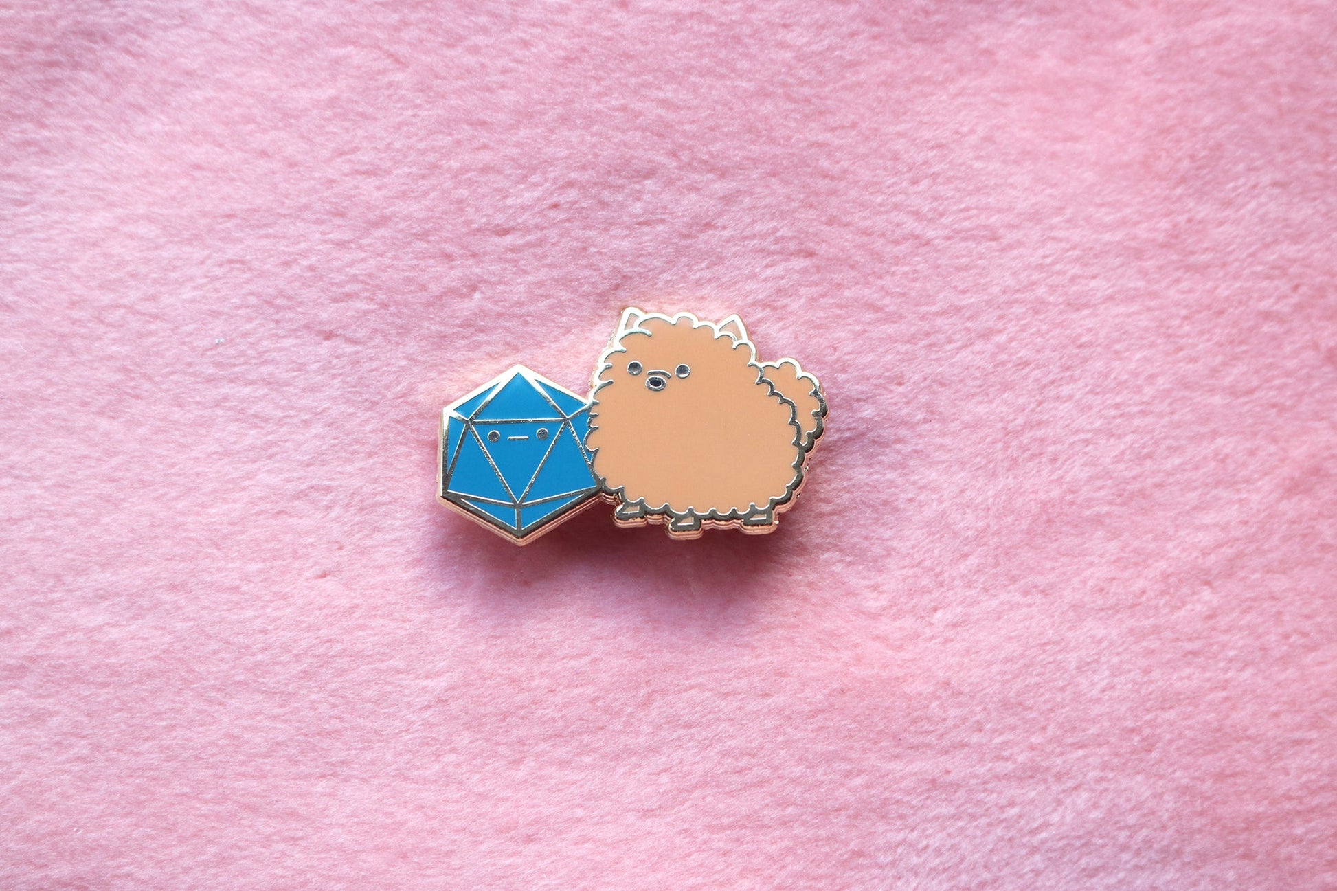 This Pomeranian enamel pin will be the perfect addition to your TTRPG dice bag or even on your jean jacket the next time you play a DnD session!