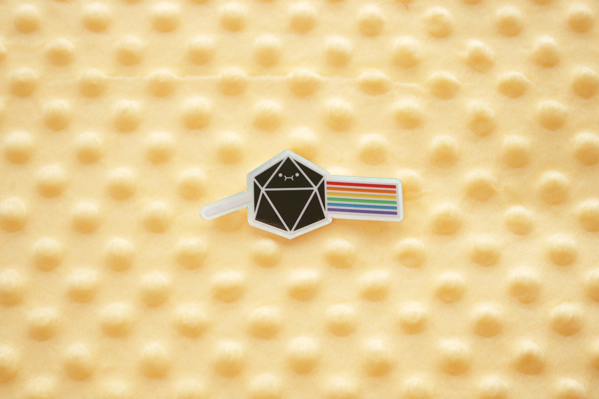 This sticker is a reference to the famous prism design on the album The Dark Side of The Moon. If you love DnD and Rock and Roll then this sticker is for you!