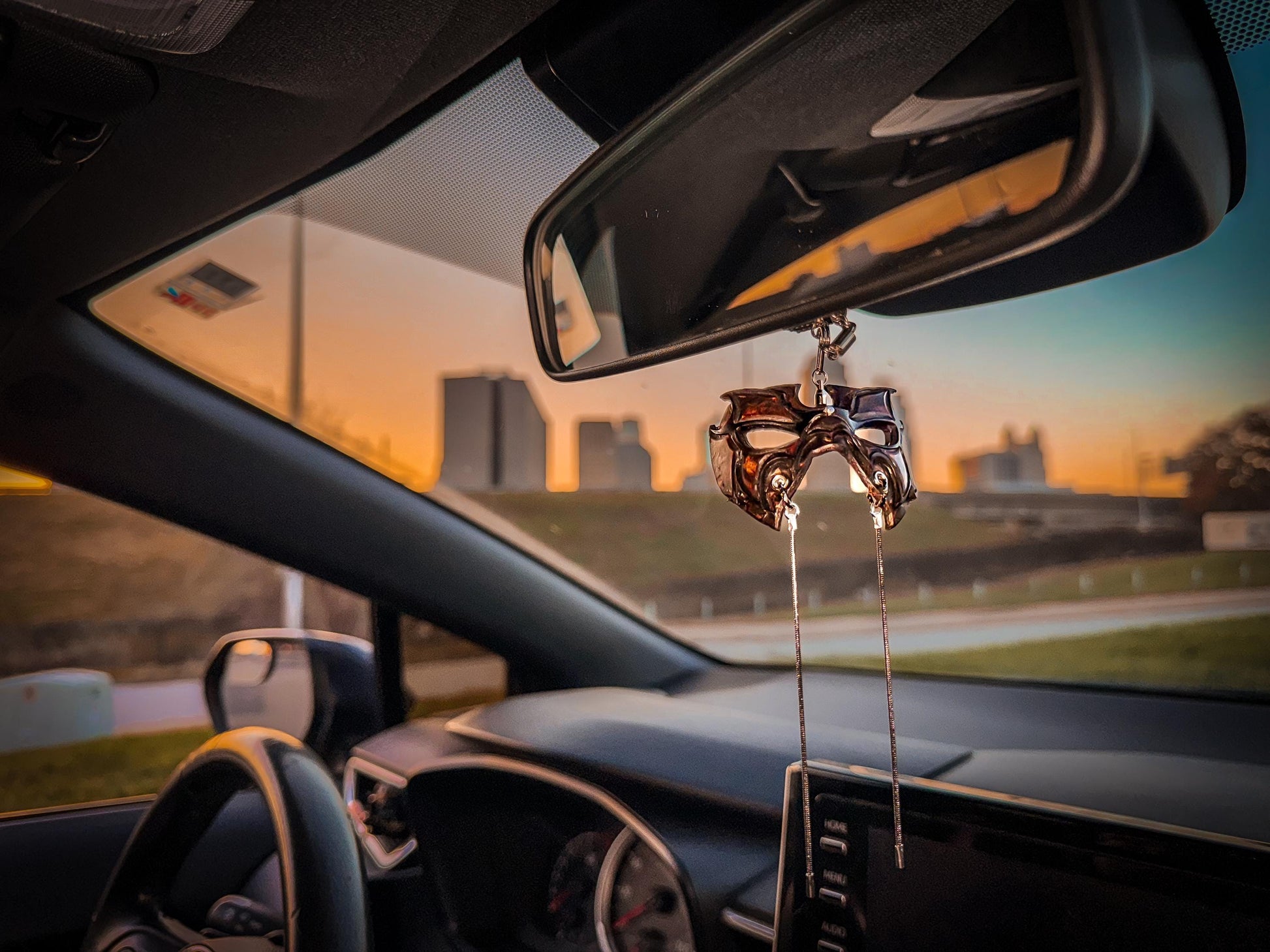 ~ Car Mirror Decoration: Stand out on your next outing by embellishing your mirror with a mini mask charm by selecting our longest chain option and looping it around your mirror.