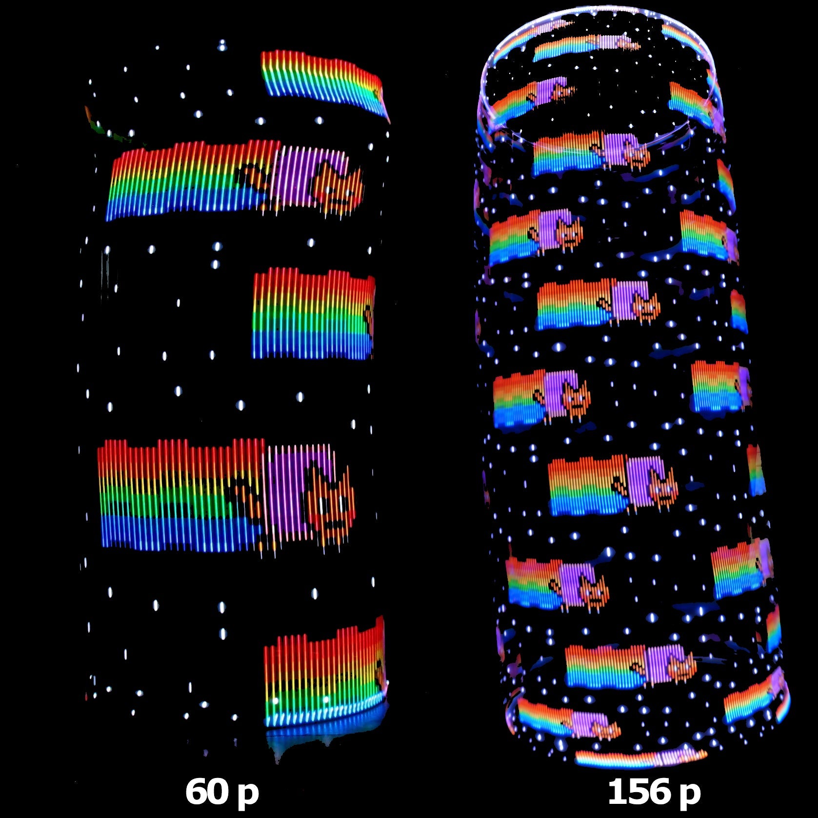 - 156p is our new super resolution 156LEDs/meter circuit (359 LEDs in a 28" hoop). Over twice the LEDs of any other LED hoop anywhere. Also known as the AF+. This adds 2 extra batteries in the hoop for a total of 6 for a similar battery life as the 60p. The extra LEDs and batteries add about 1 ounce of extra weight. This hoop is made in our 11/16" tubing.