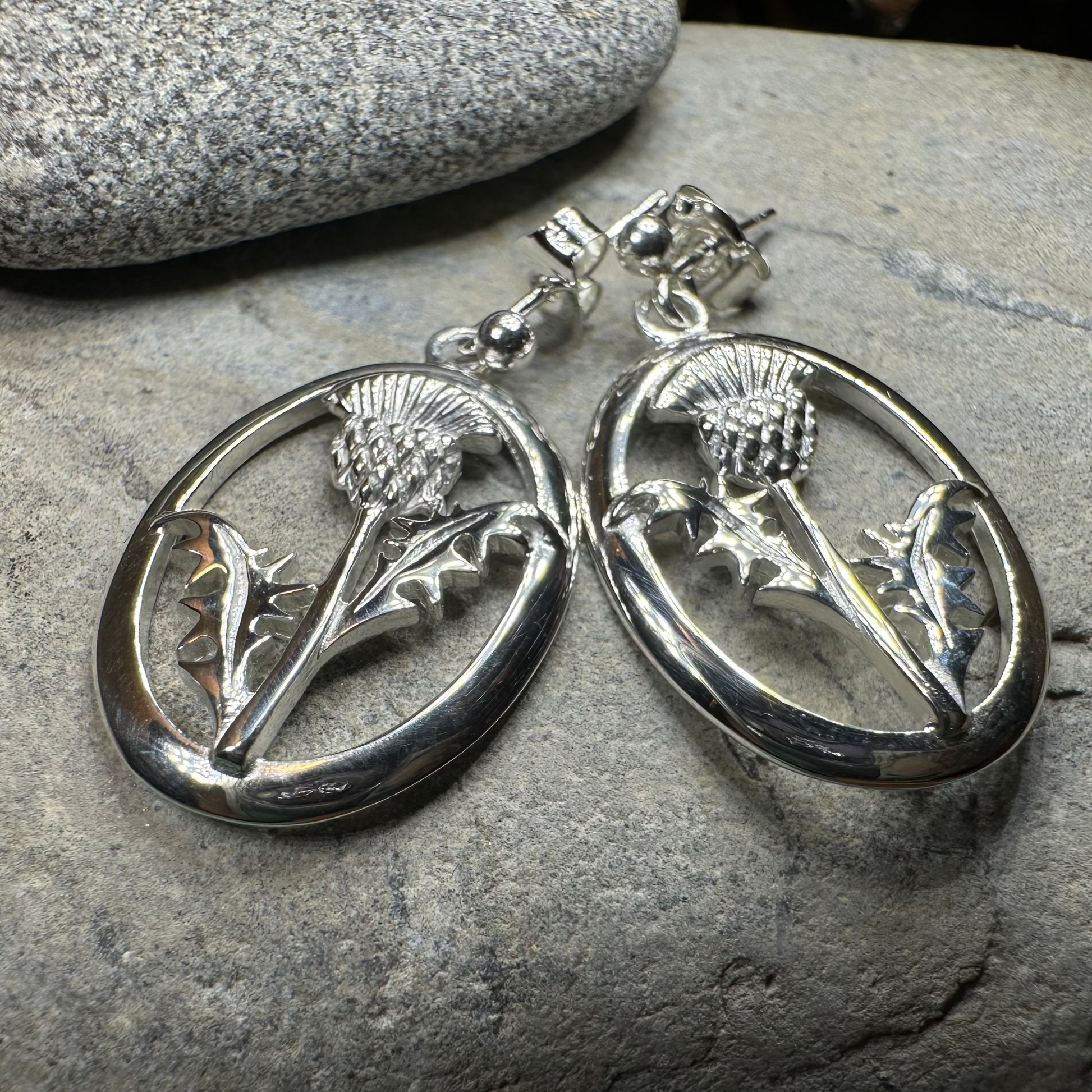 An attractive Scottish Thistle Sterling Silver Earrings using a traditional design featuring a Scottish Thistle, the national emblem of Scotland. These earrings are beautifully highlighted with realistic detailing on the flower - the beautiful design will remind you of the beauty of Scotland.