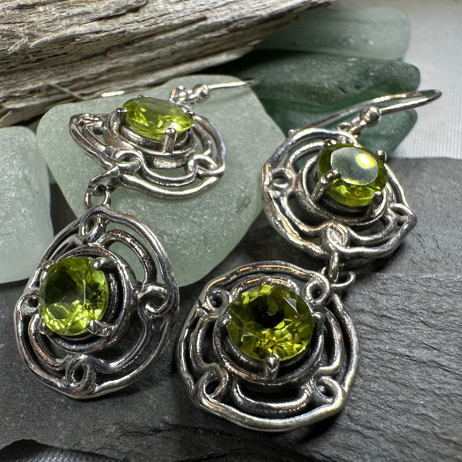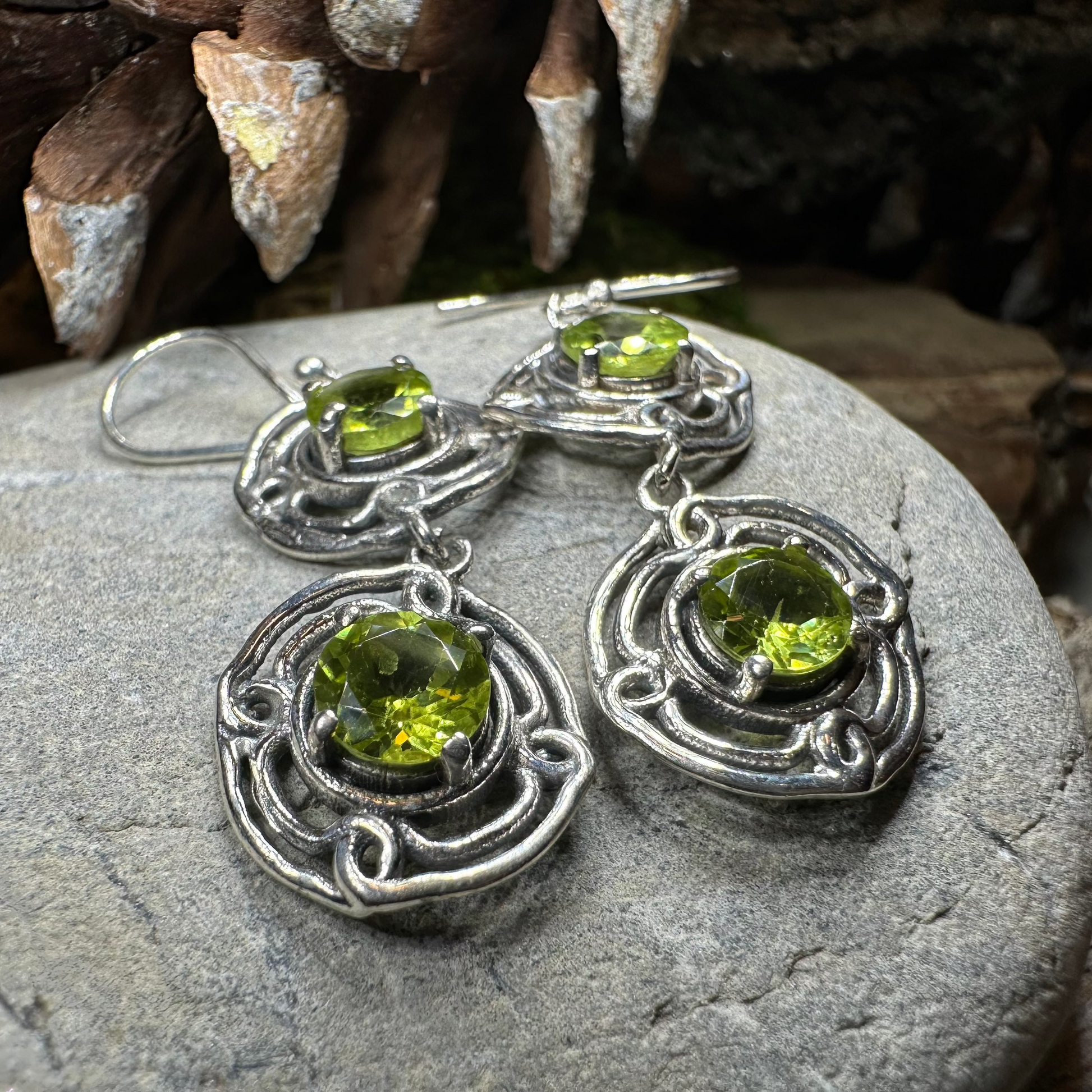 A symbol of lasting life and love - with lovely faceted Grade AAA gemstones (2 carat total stone weight in each earring). Gemstone of your choice: garnet or peridot.