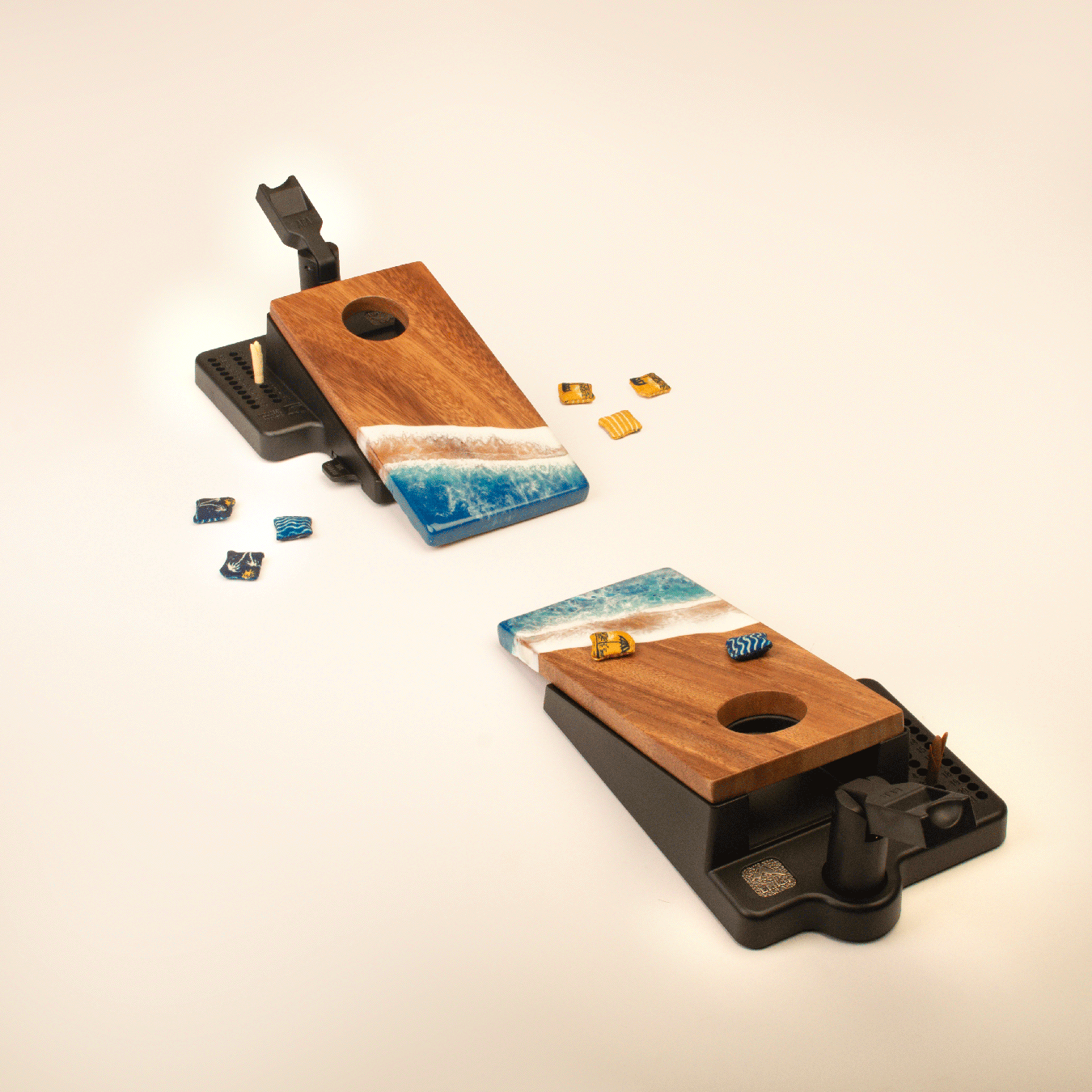 The Beach Epoxy Resin Double Chuck ART Mini Tabletop Cornhole Game