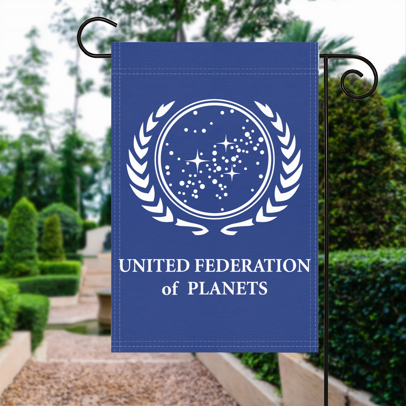 This garden flag makes a thoughtful gift for Star Trek fans, Trekkies, sci-fi collectors, or cosplayers. Display it in yards, gardens, patios, or at conventions and watch parties to celebrate the United Federation of Planets and show your Star Trek fandom.