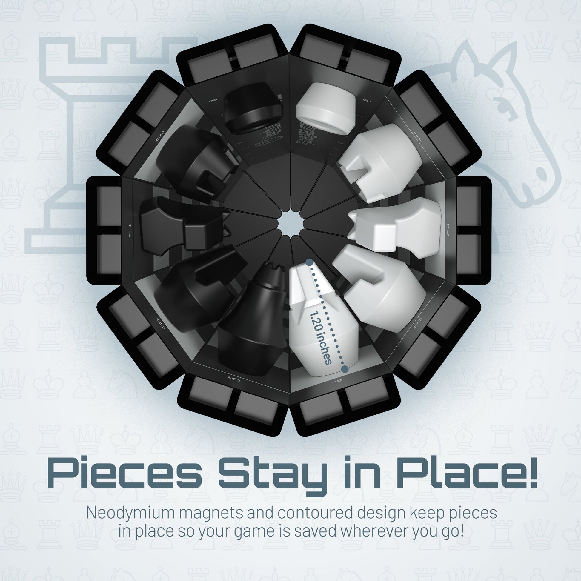 The ultimate travel Chess set, with sculpted neodymium magnet pieces and instant roll-to-save design.